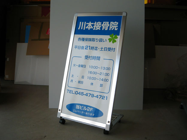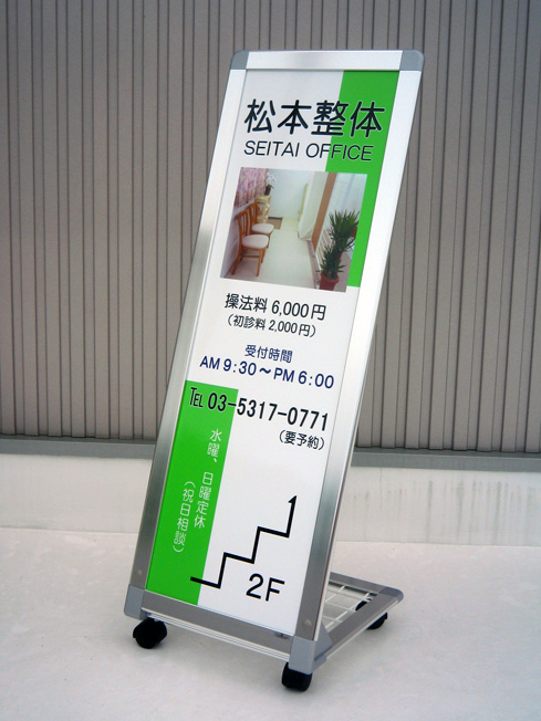 ご参考1:スタンドプレート SP-908(ホワイト) 耐候性のある樹脂サインで、持ち運びも楽にできます。オプションでウェイトを乗せて使用できます。