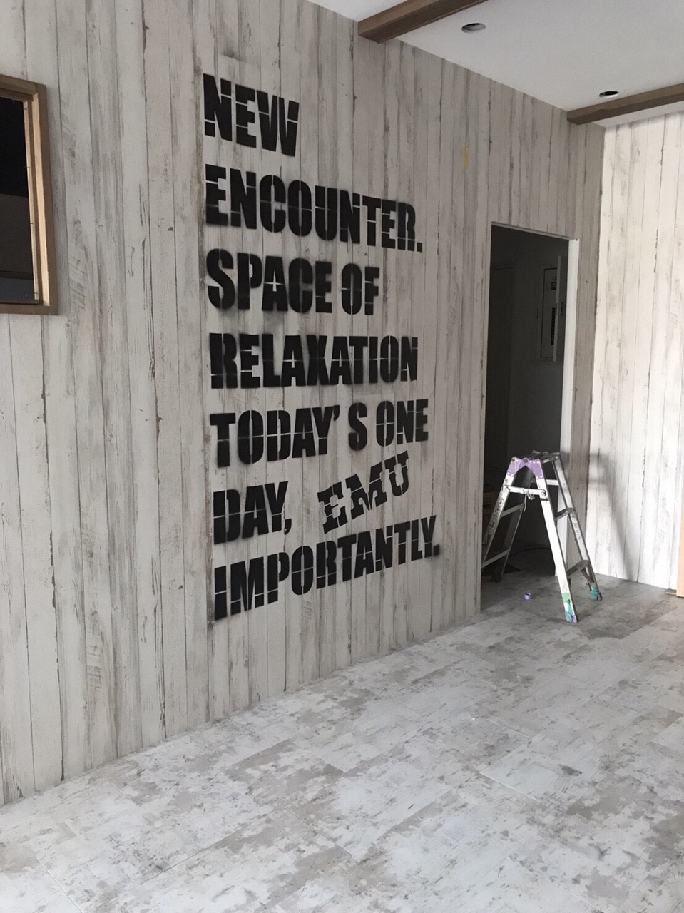 こちらは 壁一面にステンシル